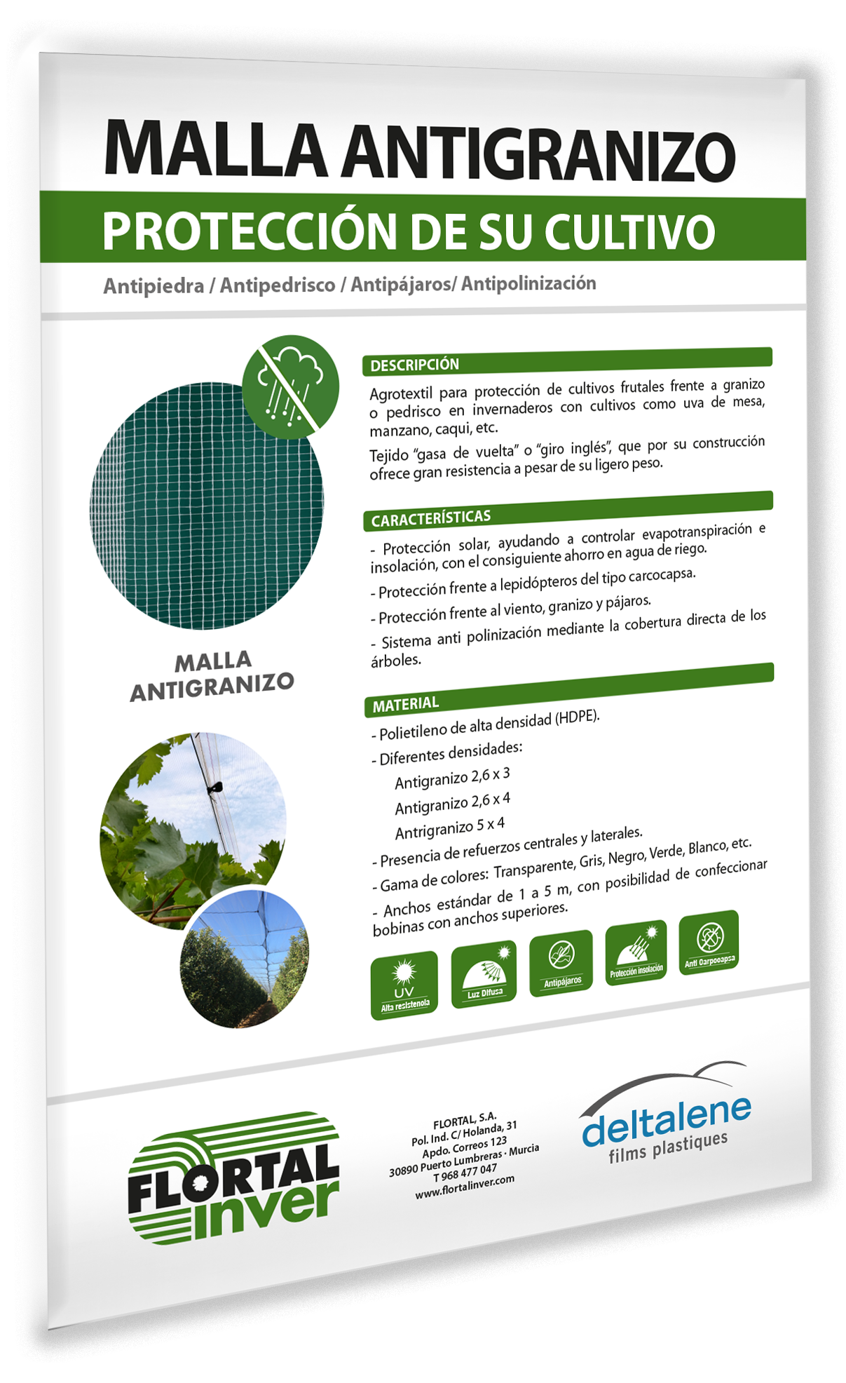 - Protección solar, ayudando a controlar evapotranspiración e insolación, con el consiguiente ahorro en agua de riego.