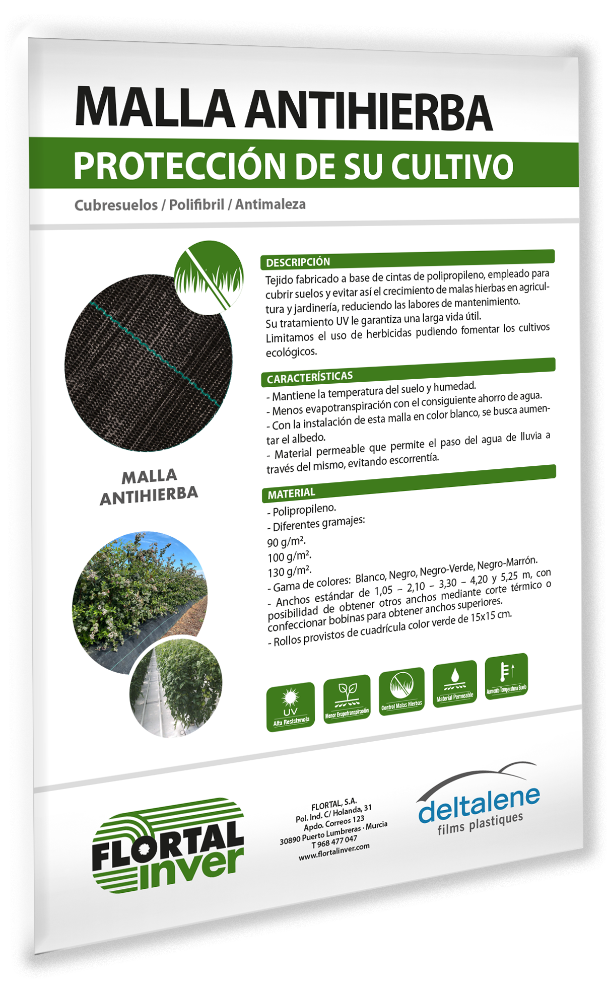 Tejido fabricado a base de cintas de polipropileno, empleado para cubrir suelos y evitar así el crecimiento de malas hierbas en agricultura y jardinería, reduciendo las labores de mantenimiento.